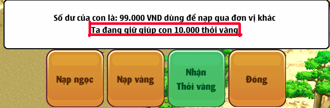 NPC > Nạp Tiền > Số tiền sẽ hiển thị như ảnh