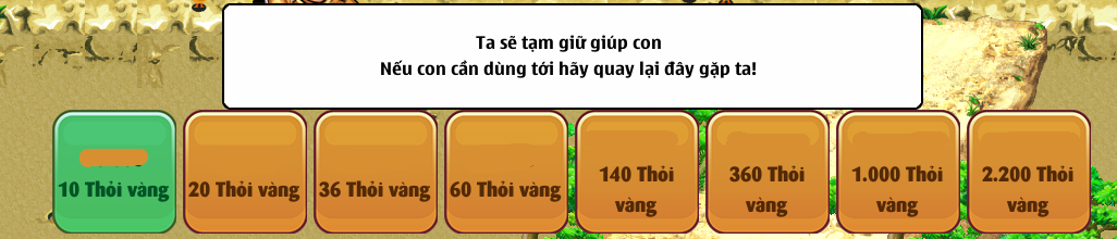 Số lượng thỏi vàng sẽ hiển thị như ảnh và 1 thỏi vàng bán được 500.000.000 Vàng